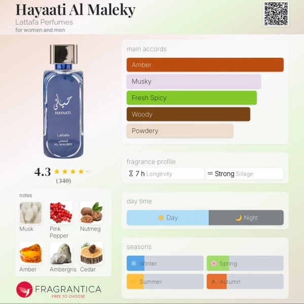 عطر Hayati Blue نسخهای سبکتر، شادابتر و روزانهتر از سری حیاتی لطافه است. این عطر با ترکیب خنک و کمی شیرین، حس طراوت و انرژی را القا میکند و برای استفاده در روزهای گرم سال بسیار مناسب است.