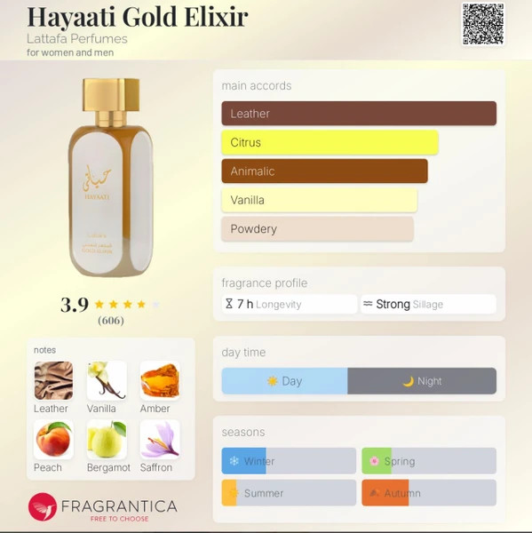 عطر Hayati Gold یکی از محبوبترین مدلهای سری حیاتی لطافه است که با رایحهای گرم، شیرین و لطیف، حس لوکس و جذابیت را منتقل میکند. این عطر نهچندان تند و نه سنگین، انتخابی عالی برای استفاده روزمره و همچنین هدیه دادن محسوب میشود.
