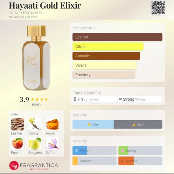 عطر Hayati Gold یکی از محبوبترین مدلهای سری حیاتی لطافه است که با رایحهای گرم، شیرین و لطیف، حس لوکس و جذابیت را منتقل میکند. این عطر نهچندان تند و نه سنگین، انتخابی عالی برای استفاده روزمره و همچنین هدیه دادن محسوب میشود.